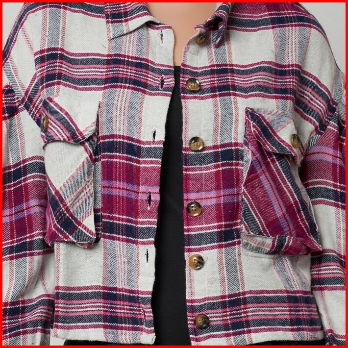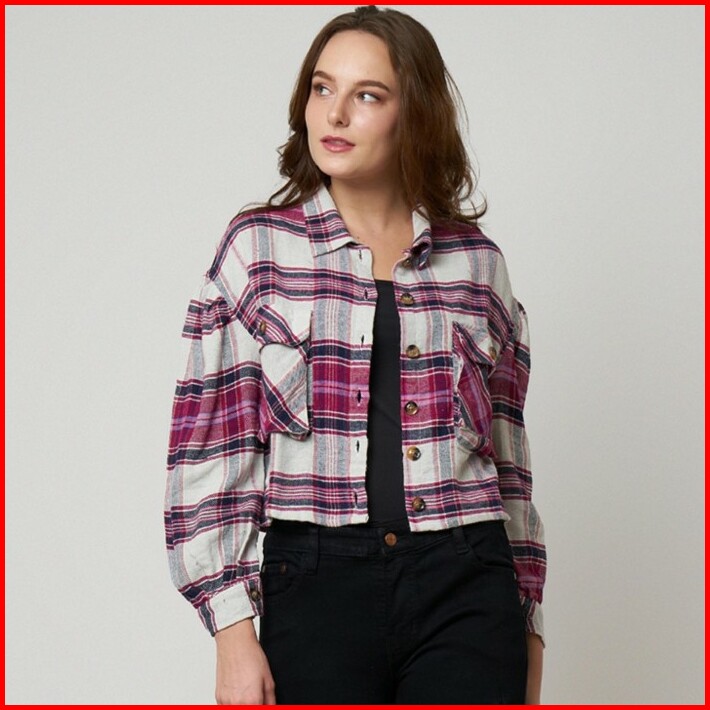 Monellina 601203 Kemeja Flanel Crop Outer Oversize Wanita Lengan Panja