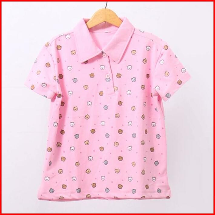 Kimcan Atasan Baju Kaos Kerah Polo Shirt Fashion Anak Perempuan 5-12 Tahun
