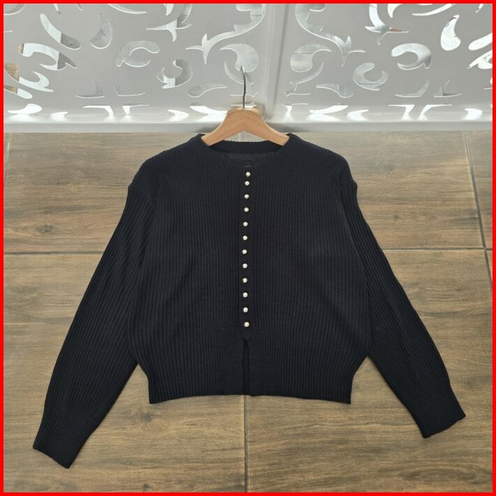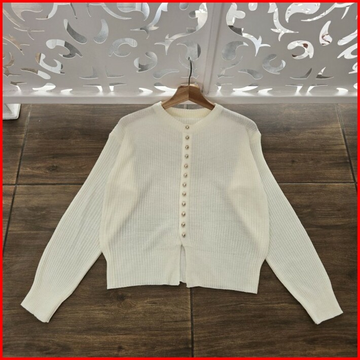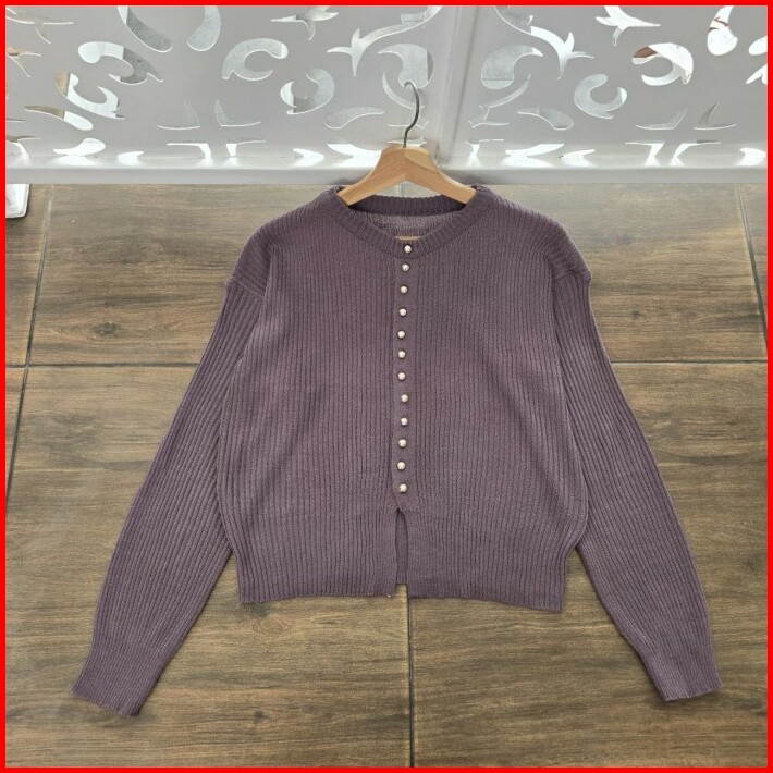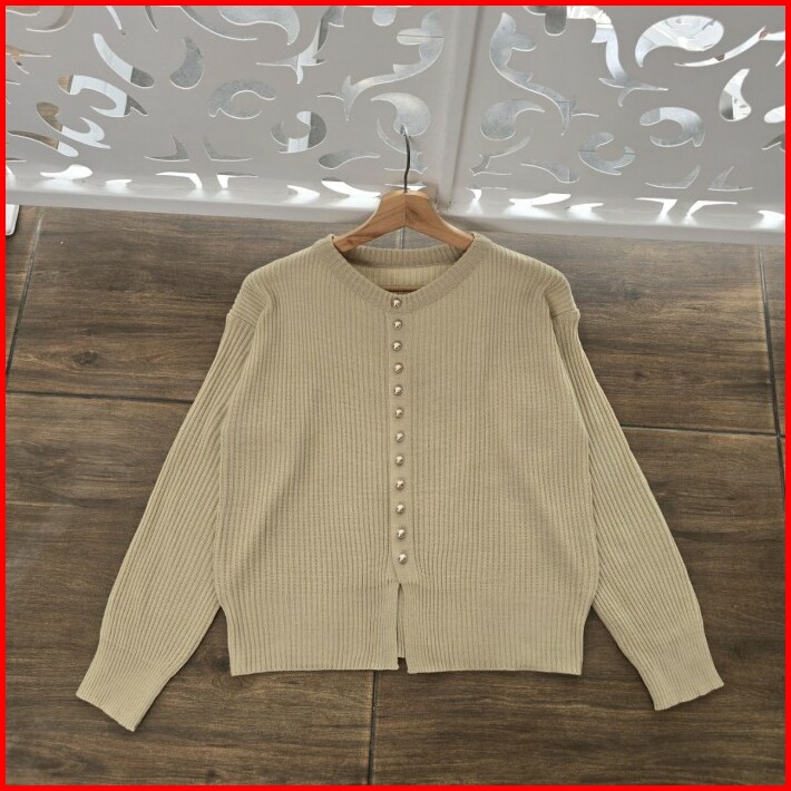 Outher Jamur Knite Cardigan Rajut Polos Jalur Basic