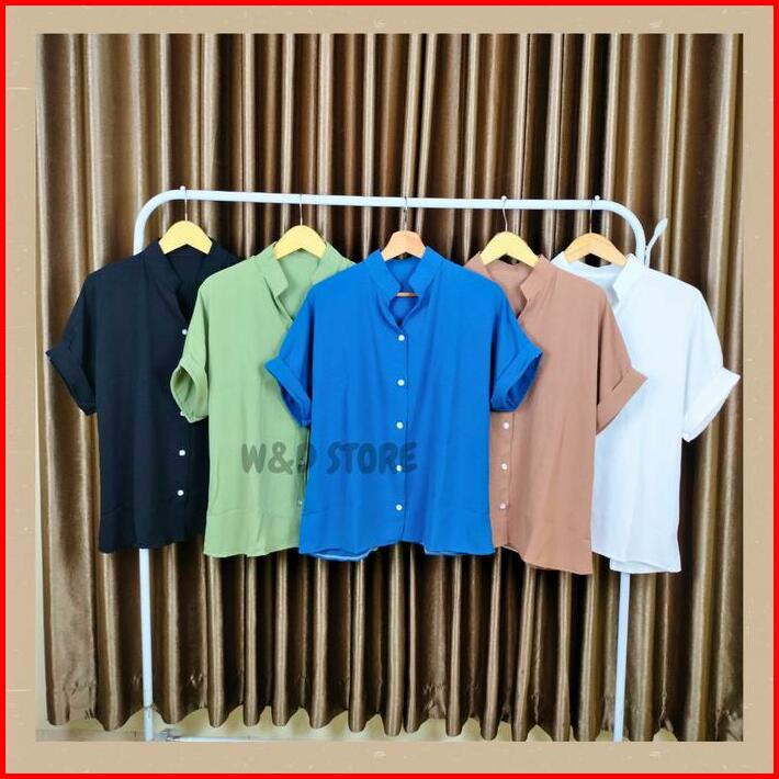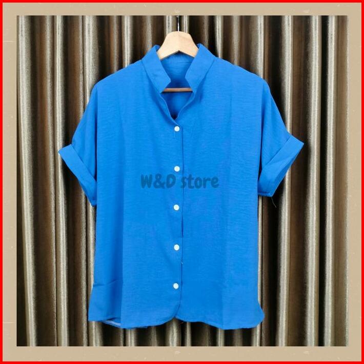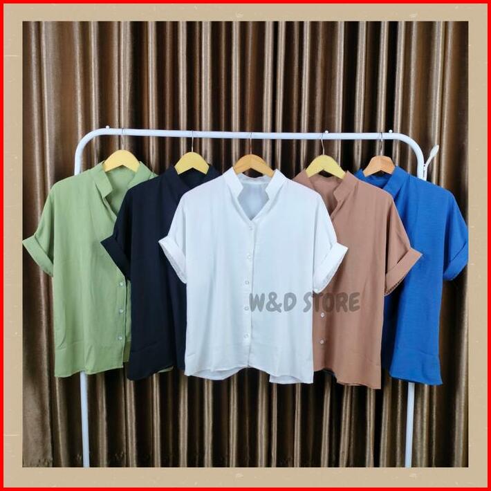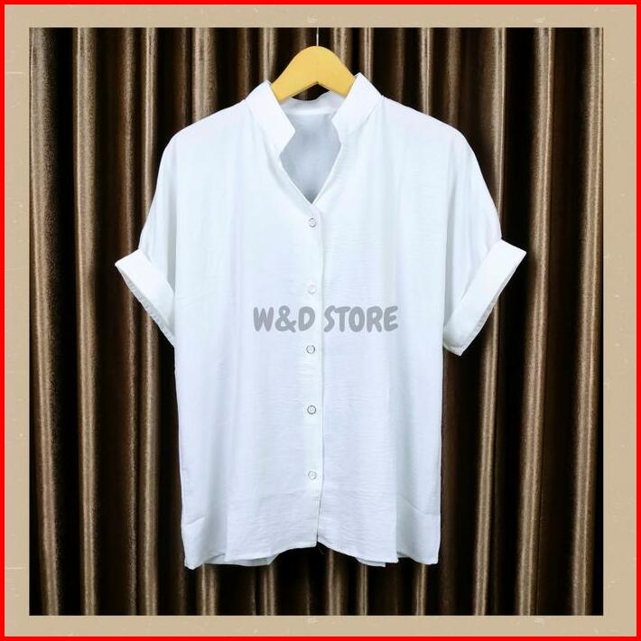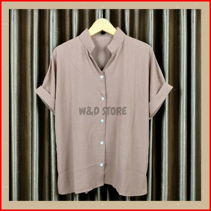 Kemeja Wanita Polos Lengan Pendek Jumbo Crincle Airflow Premium V-neck Crinkle Atasan Baju Oversize Panjang Linen Basic