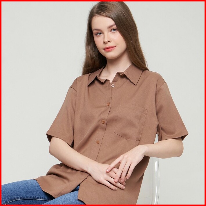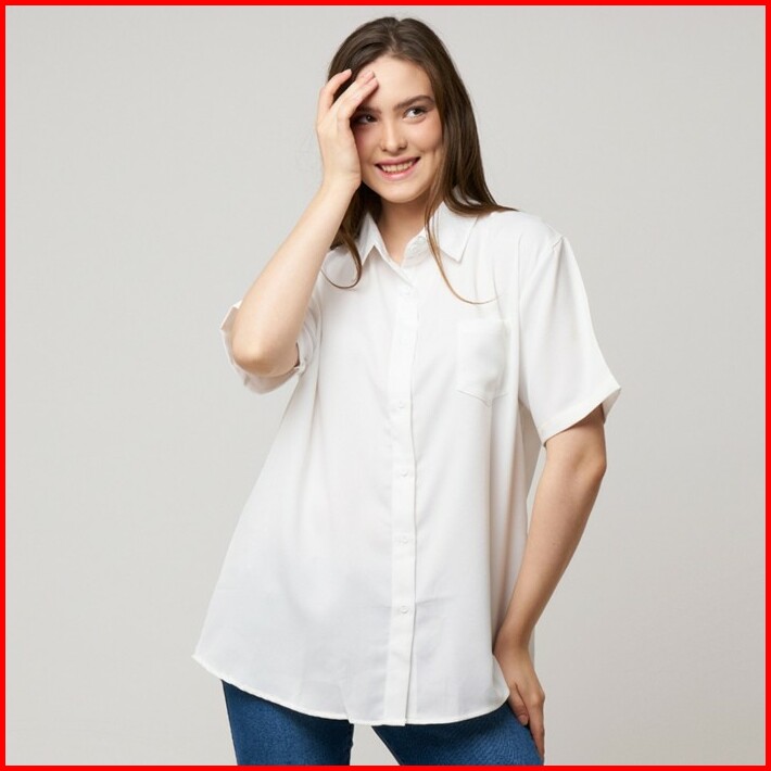Monellina 601065 Kemeja Oversize Wanita Lengan Pendek Polos