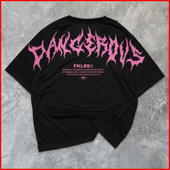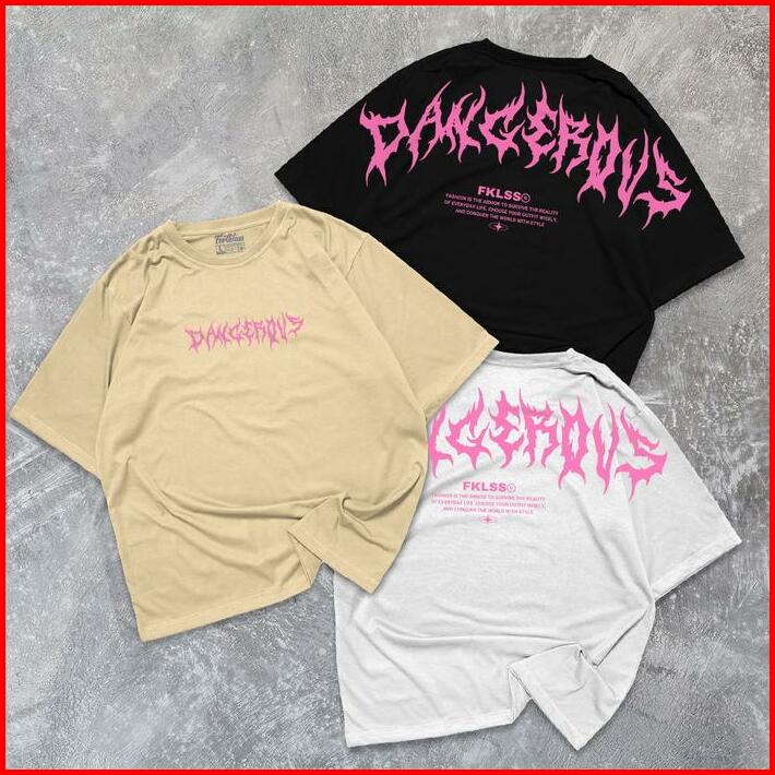 Fortklass Kaos Oversize Dangerous T-shirt Cowok Premium Kaos Pria Lengan Pendek Jumbo Distro Oblong Baju Keren Combed Po