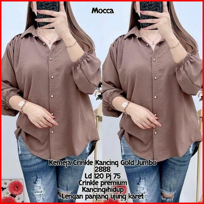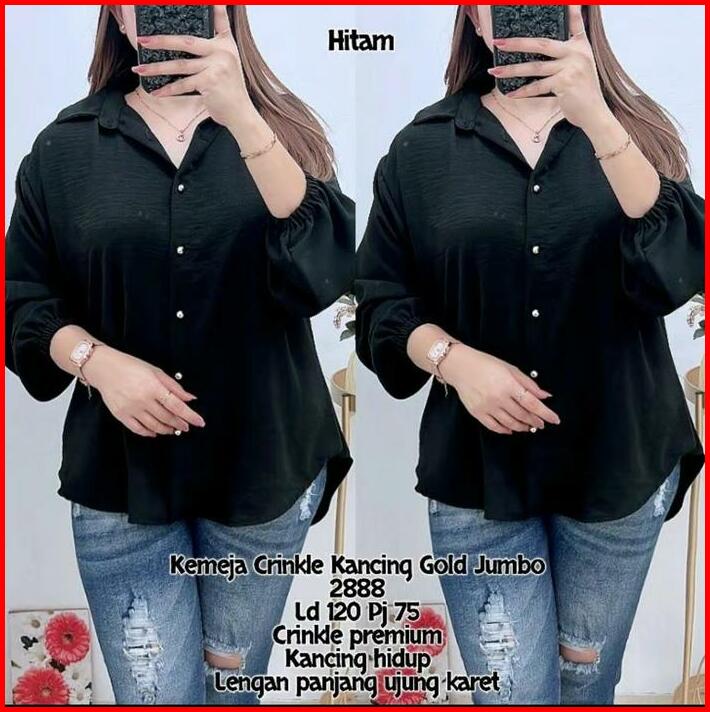 Kemeja Crinkle Polos Wanita Jumbo Kancing Premium Baju Atasan Motif Panjang Karet Oversize