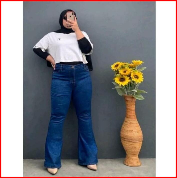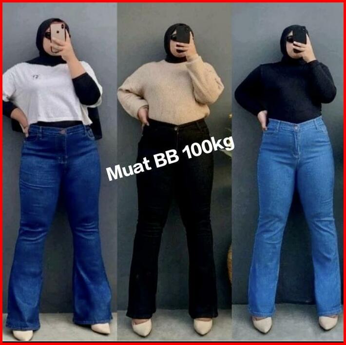 Cutbray Wanita Jumbo Jeans Highwaist Vol.2 Panjang Stretch Hitam Celana Cewek Regular Celana Panjang Denim