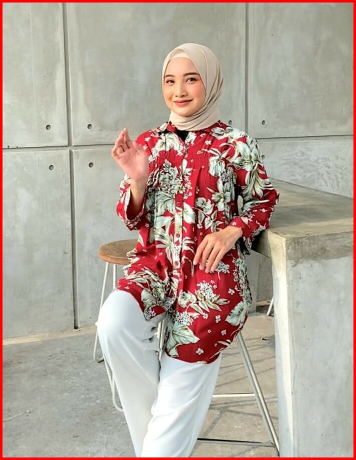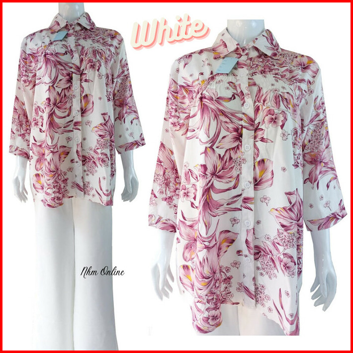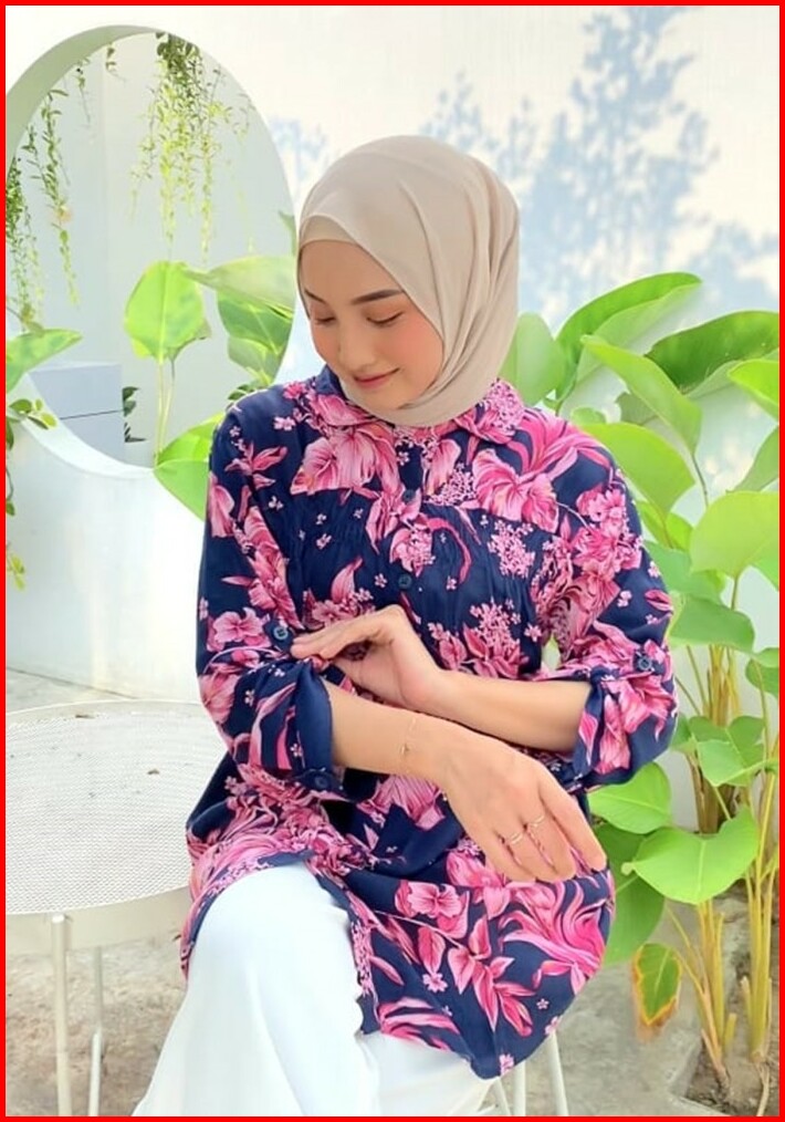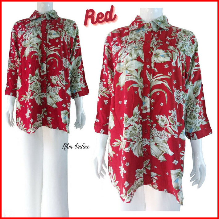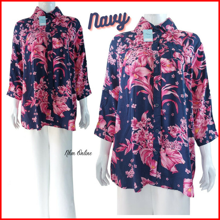 Kemeja Atasan Wanita Jumbo Katun Rayon Oversize Adem Flower 301