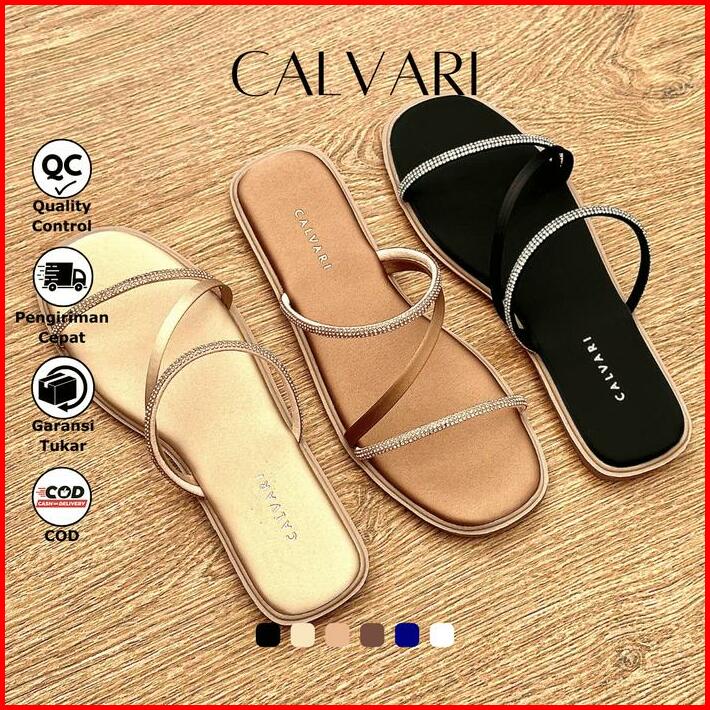 Sandal Wanita Jennie Blink Tali Teplek Kasual Terbaru Sendal Kekinian By Calvari Original Flip Flops Flat Heel 1 Cm Or L
