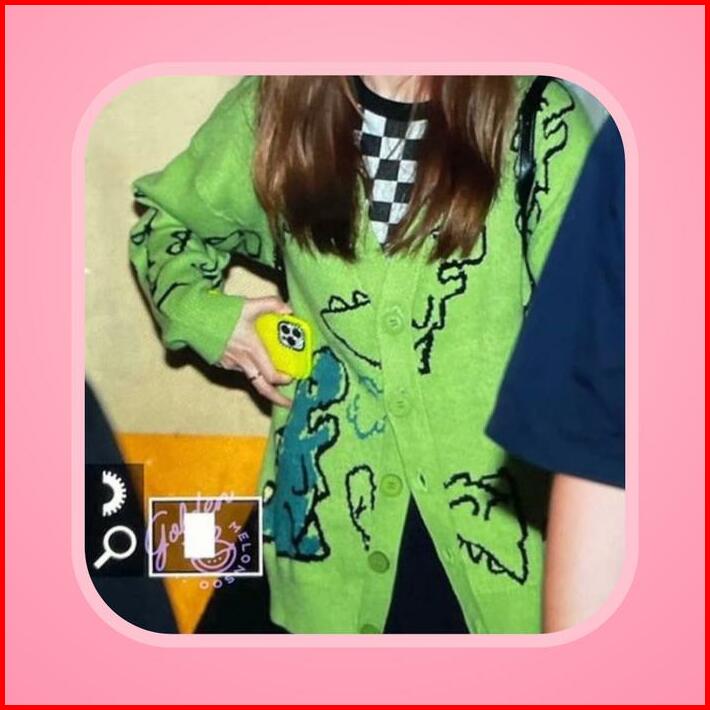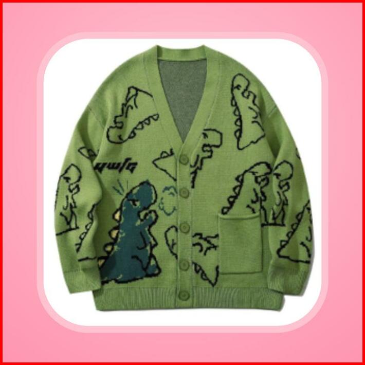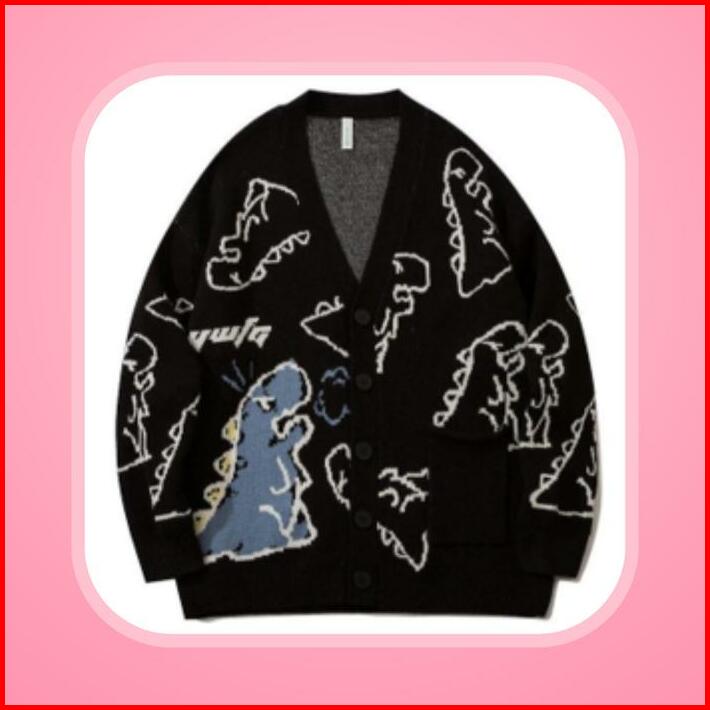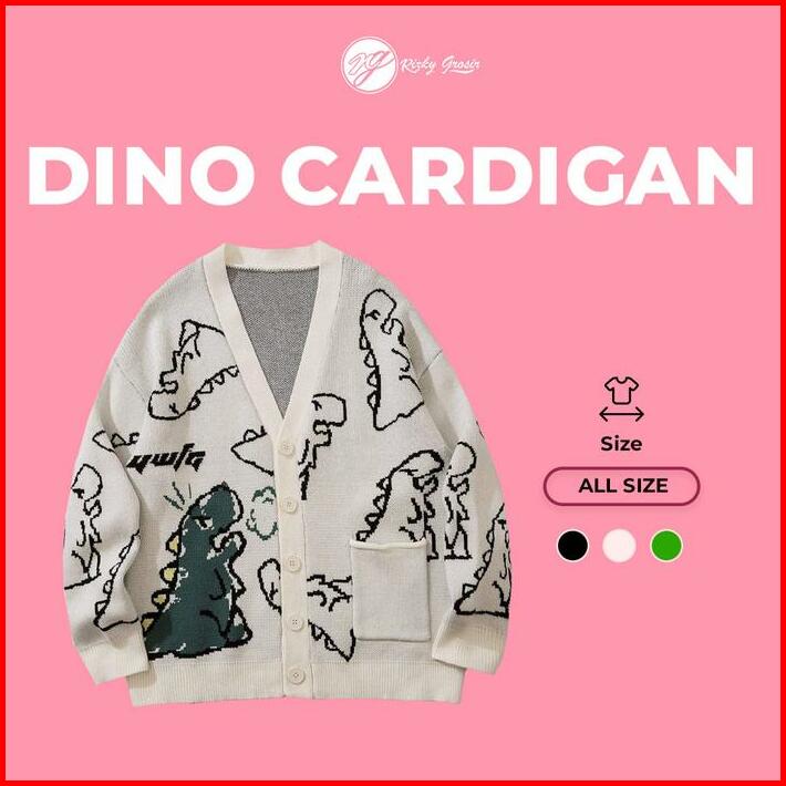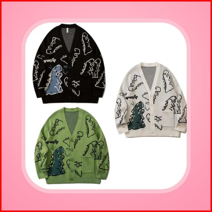 Rg Jisoo Bp Dino Streetwear Cardigan Knitwear Panjang Baju Sweater Motif Wanita Oversize Atasan Outer Cewek Casual