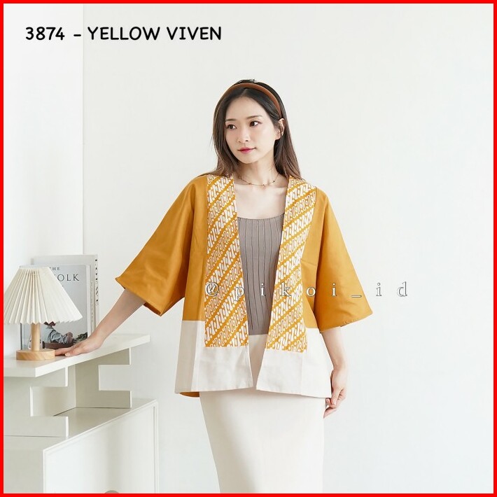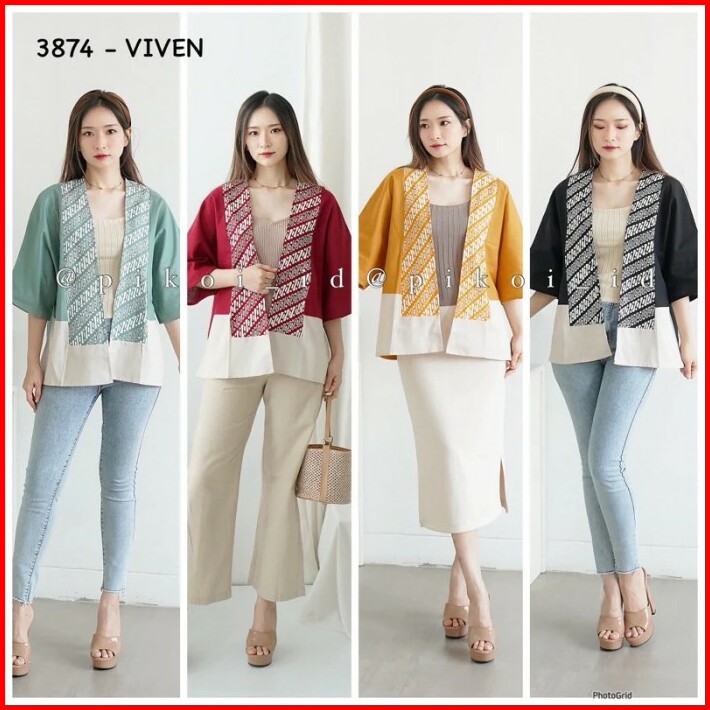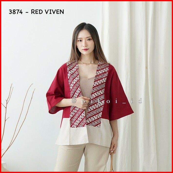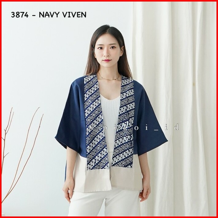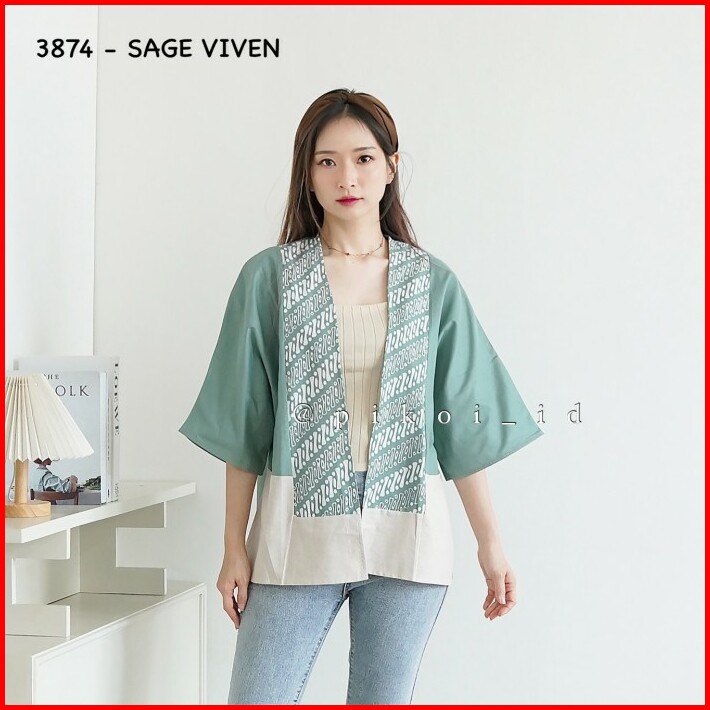 Cardigan Batik Wanita Modern Katun Linen Polosan Outer Etnik Wanita Simple Lengan Panjang 241 Caro