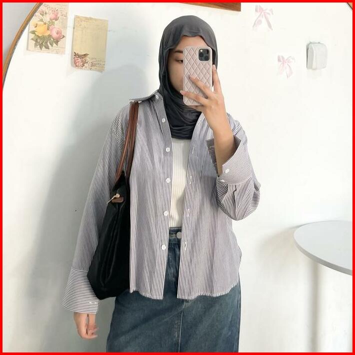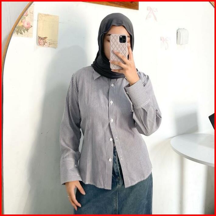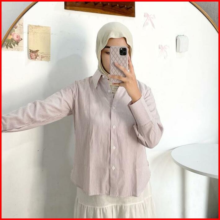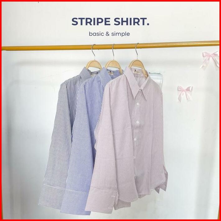 Stripe Shirt By Ottaa.id Kemeja Salur Kemeja Garis Kemeja Casual Wanita