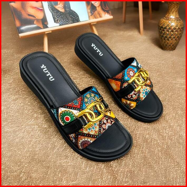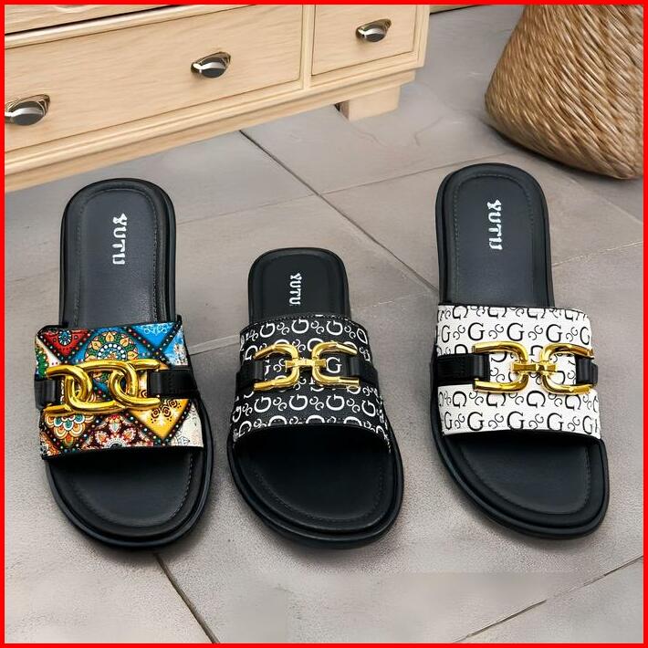 Sandal Kasual Wanita Sandal Teplek Slop Slip On Wanita Kekinian Flat Gesper Pita D Platform Trendy 2025 Sendal Cewek 242