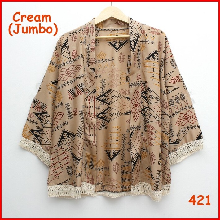 Cardigan Jumbo Xxl Ld 118 Tribal Motif Etnic Batik 523 Cream Jumbo
