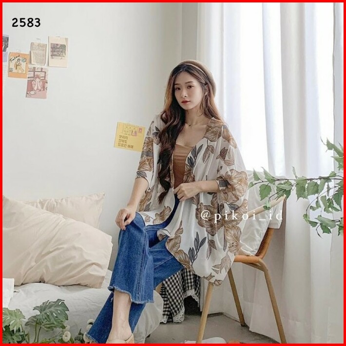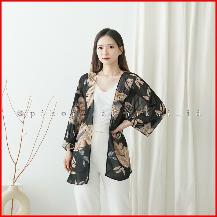 Summer Outer Cardigan Pantai Luaran Kimono Outer Ikat Daun