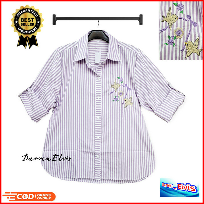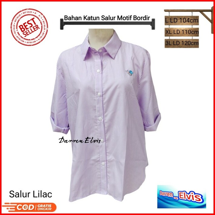 Kemeja Wanita Salur Lilac Bordir Pita