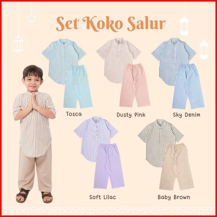 Yobebee Setelan Koko Salur Anak Laki Laki Usia 2 3 4 6 8 10 12 Tahun Baju Muslim One Set Koko Lembut Kurta Eid Series Ba