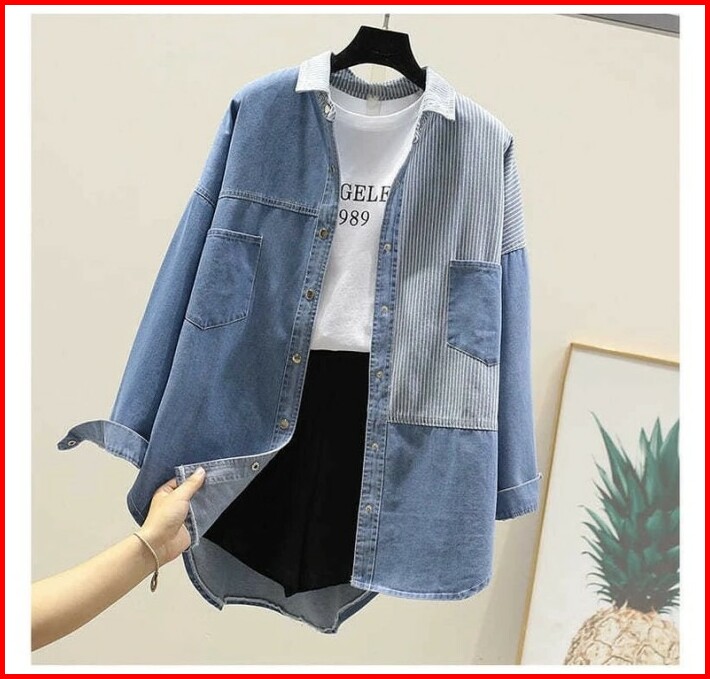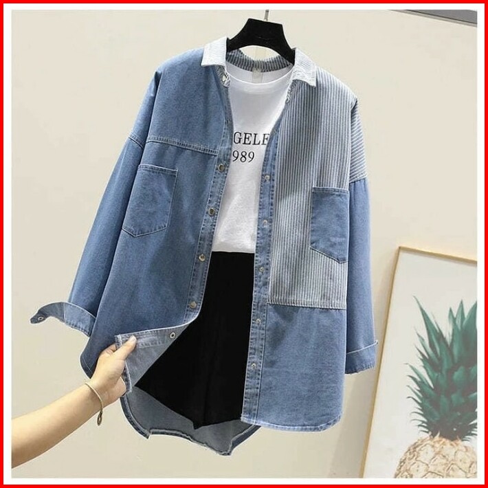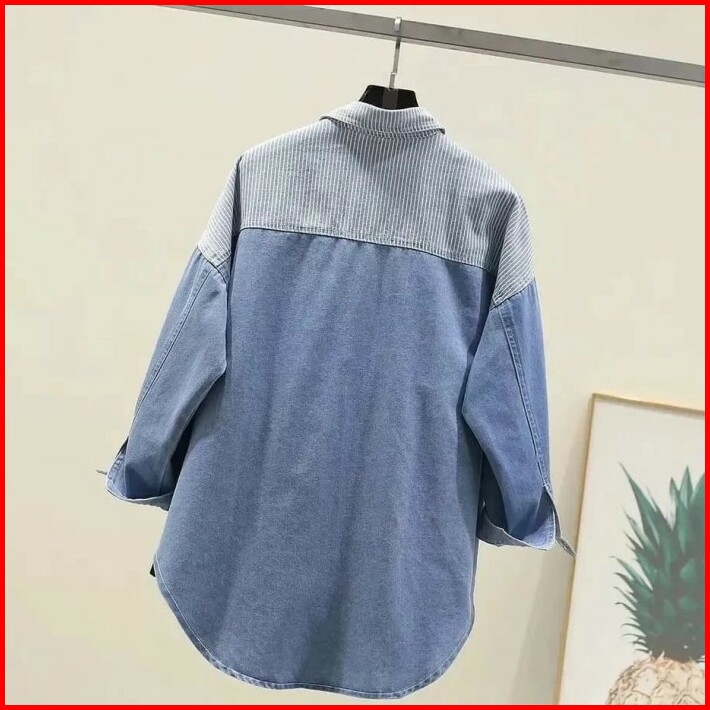 Jumbo Kemeja Soft Jeans Wanita Mix Katun Salur Fit Ld 120