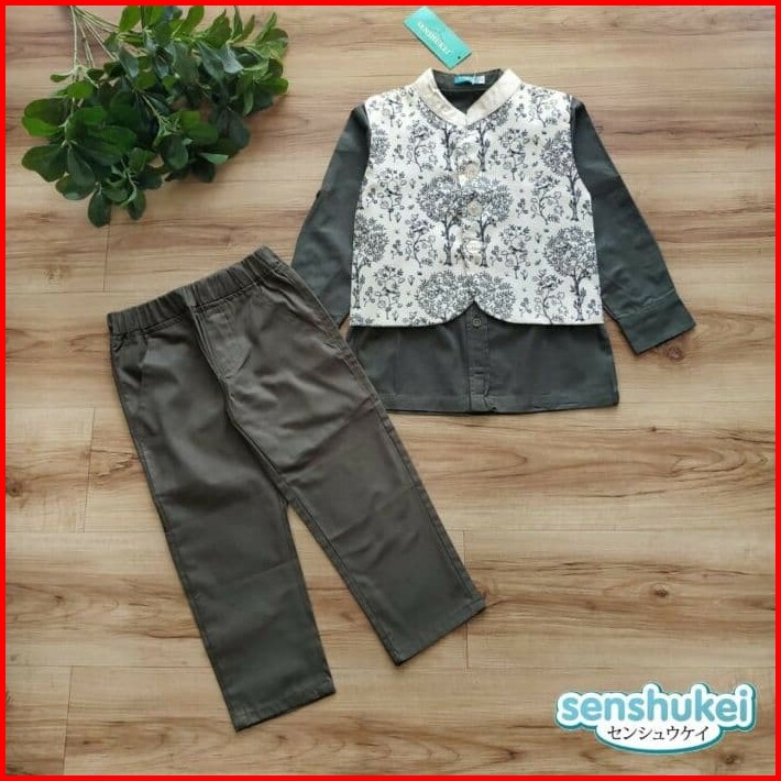2-7th Setelan Baju Koko India Turki Anak Hijau Botol Senshukei 49 F