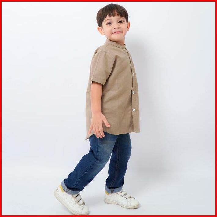 Yobebee Kemeja Linen Tangan Pendek Anak Laki Laki Usia 2 3 4 5 6 8 10 12 Tahun Baju Atasan Kids Polos Model Casual Forma