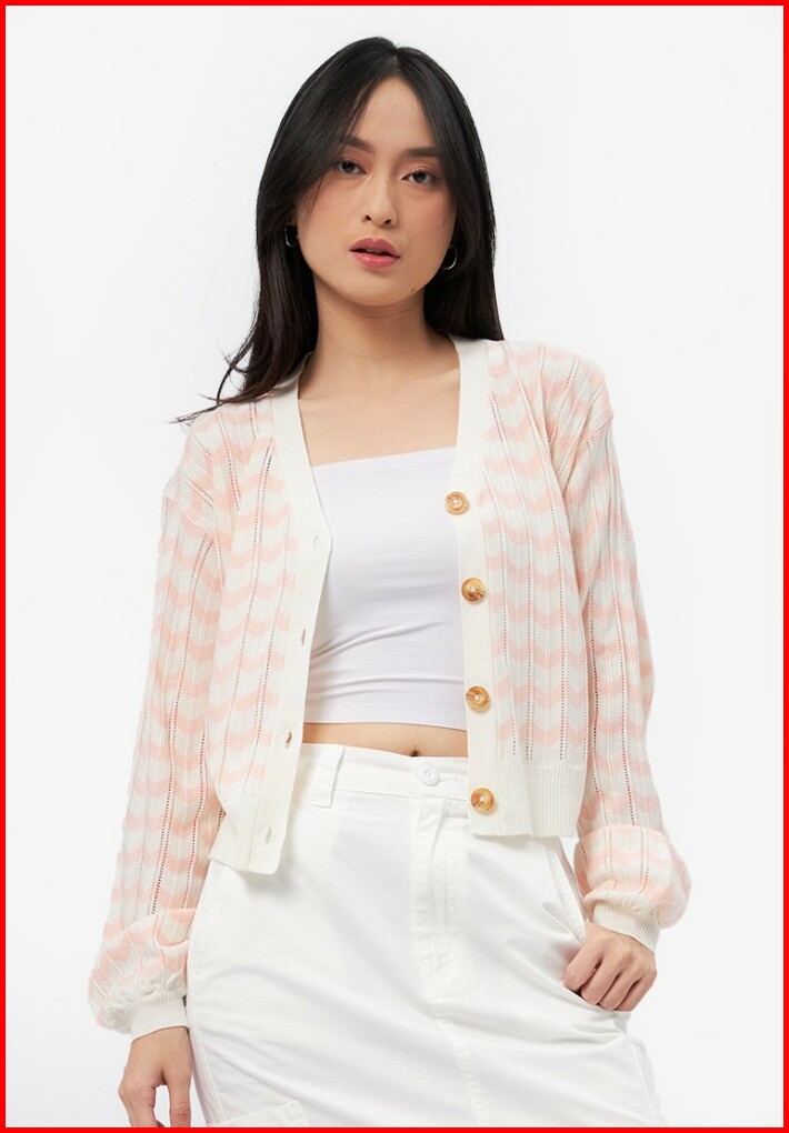 Colorbox Wave Printed Long Sleeve Cardigan I-cogkey224j113 Lt. Pink