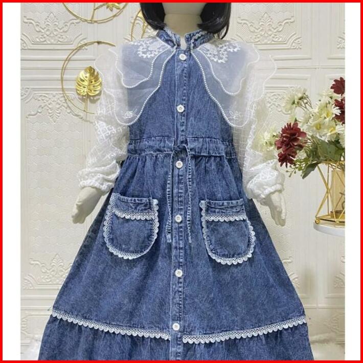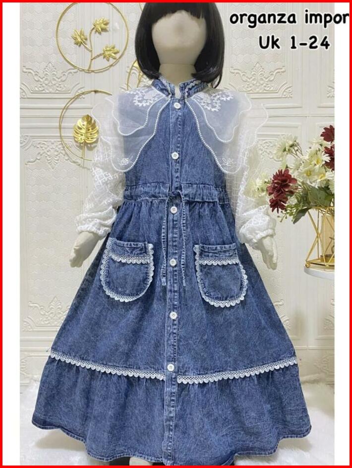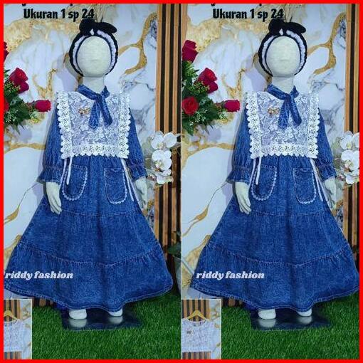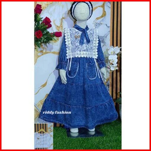 Gamis Eliza Jeans Rompi Brukat Anak Perempuan Usia 3