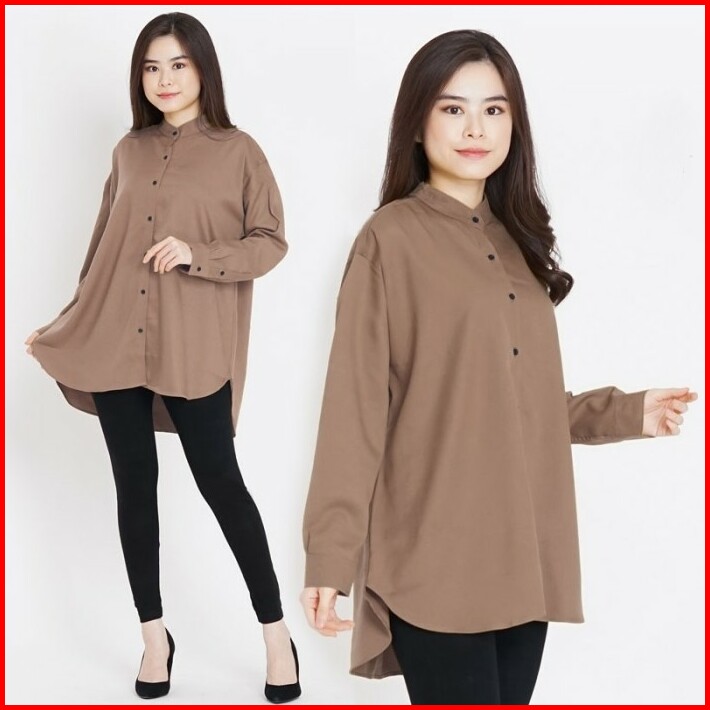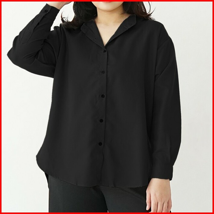 Atasan Kemeja Wanita Polos Oversize Jumbo Big Size Kerah Tegak