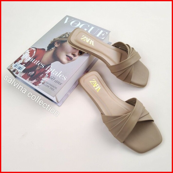 Sandal Wanita Flat Teplek Kokop Zara Sendal Selop Slip On Model Kipas Kps04