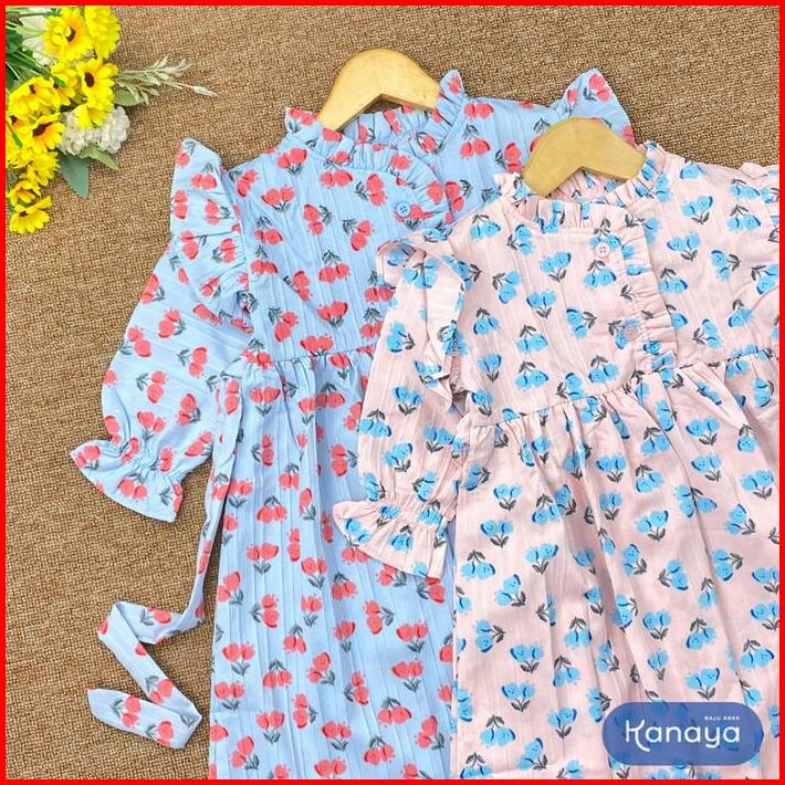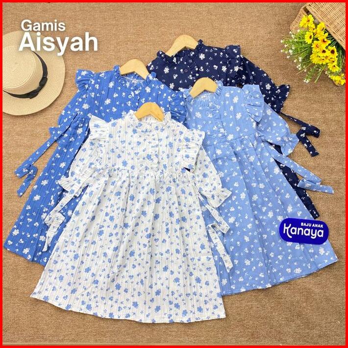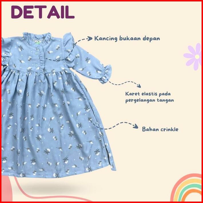 2-5th Gamis Anak Aisyah Long Dress Anak Perempuan Crinkle Katun Motif Muslim Baju Panjang