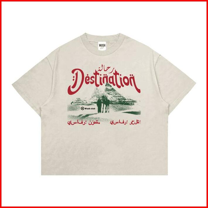 Wush Club Boxy Fit Tee Baju Kaos Distro Pria Wanita Oversize Cotton Combad 24s Destination Beige