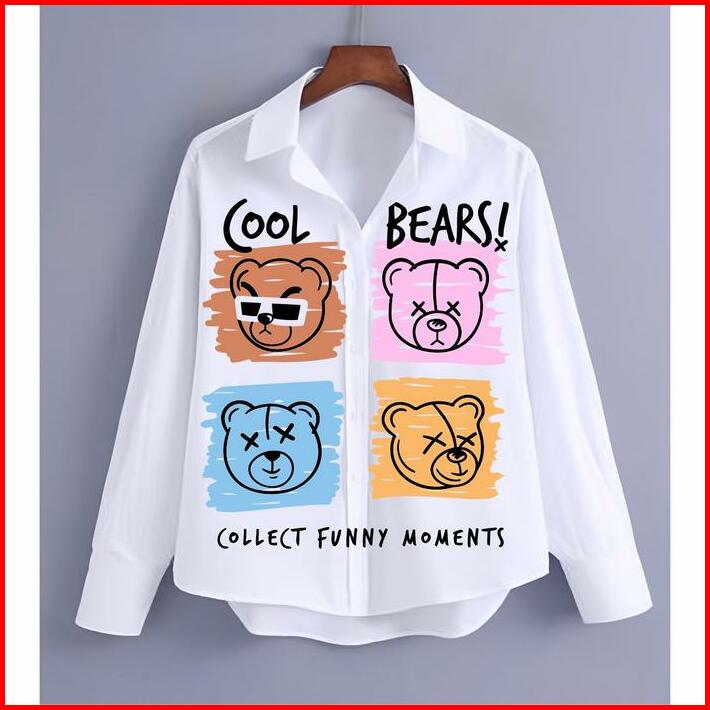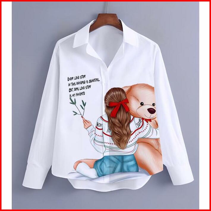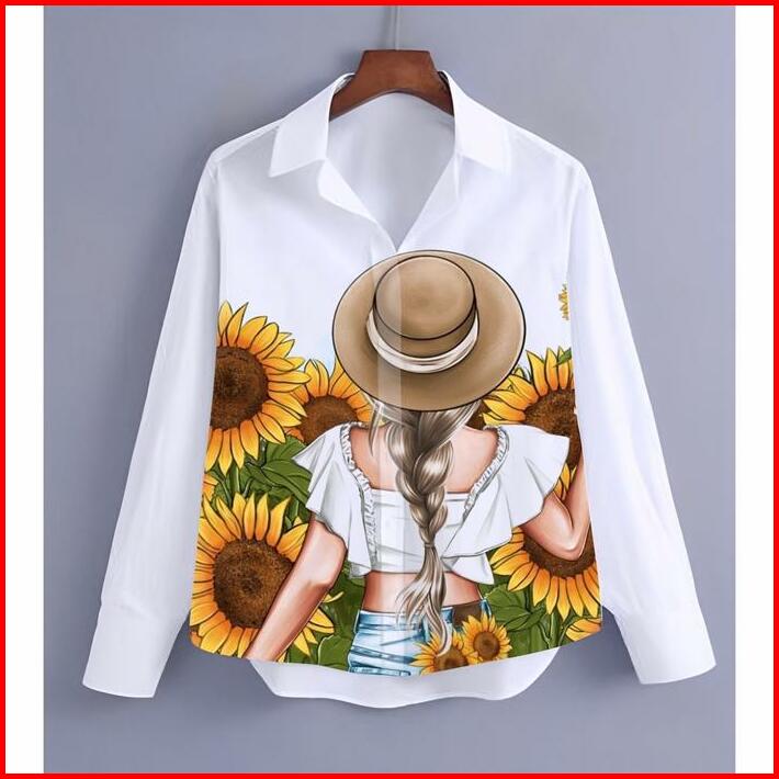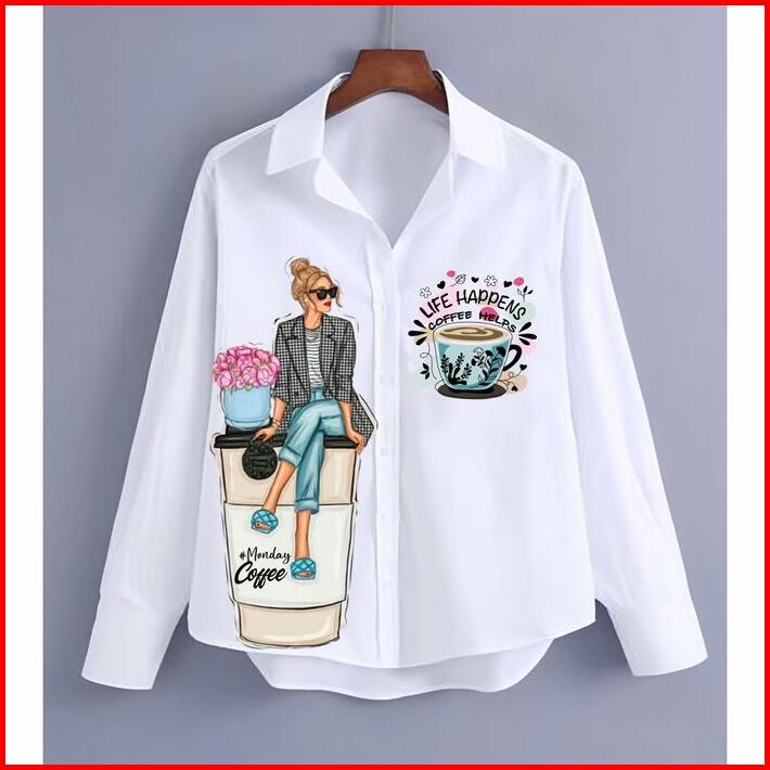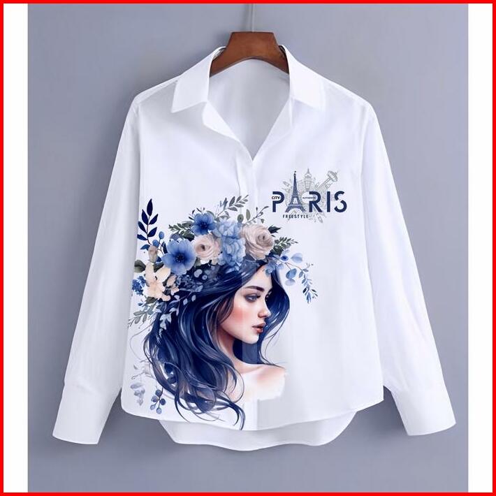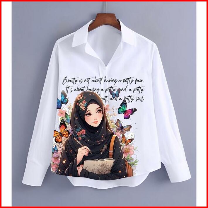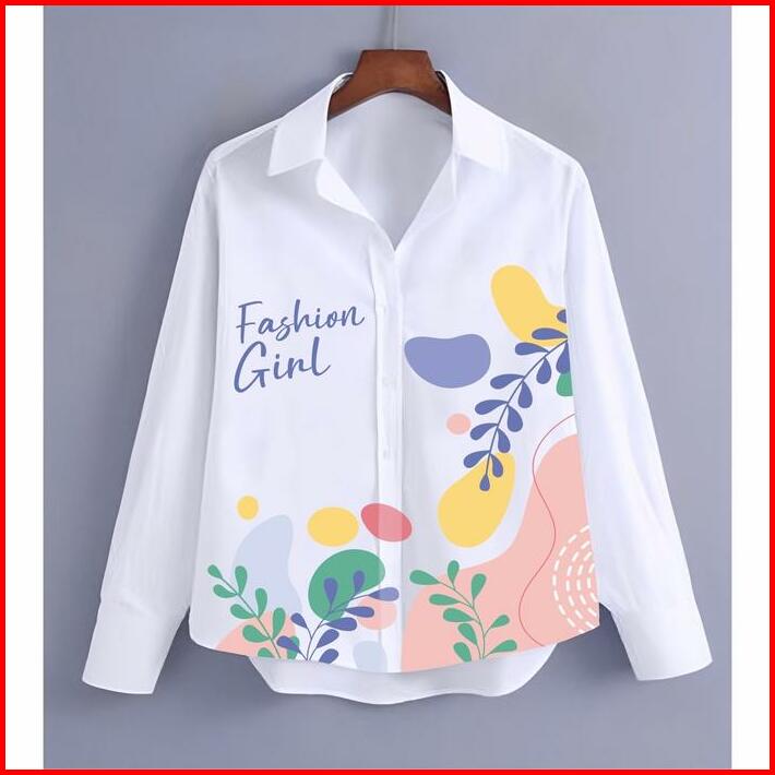 Baju Kemeja Wanita Motif Printing Dsain Grafis Model Terbaru Banyak Size M L Xl 2xl 3xl 4xl Bahan Katun Halus Warna Puti