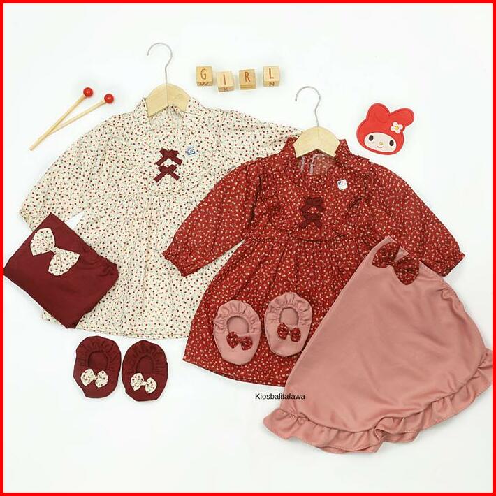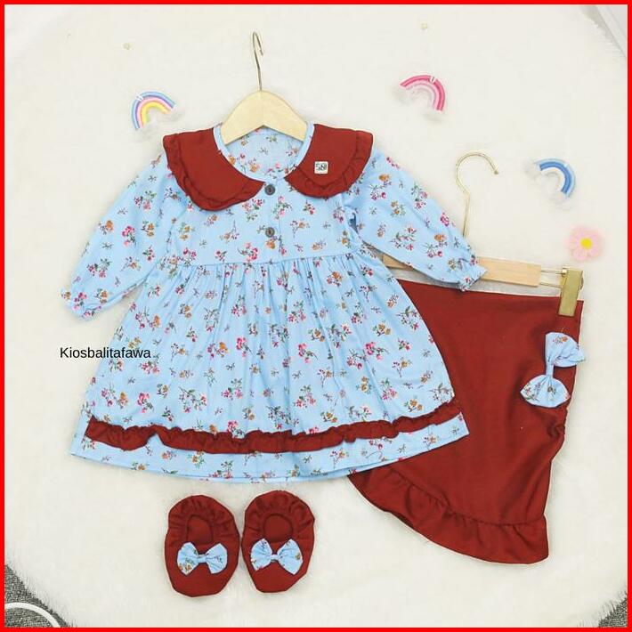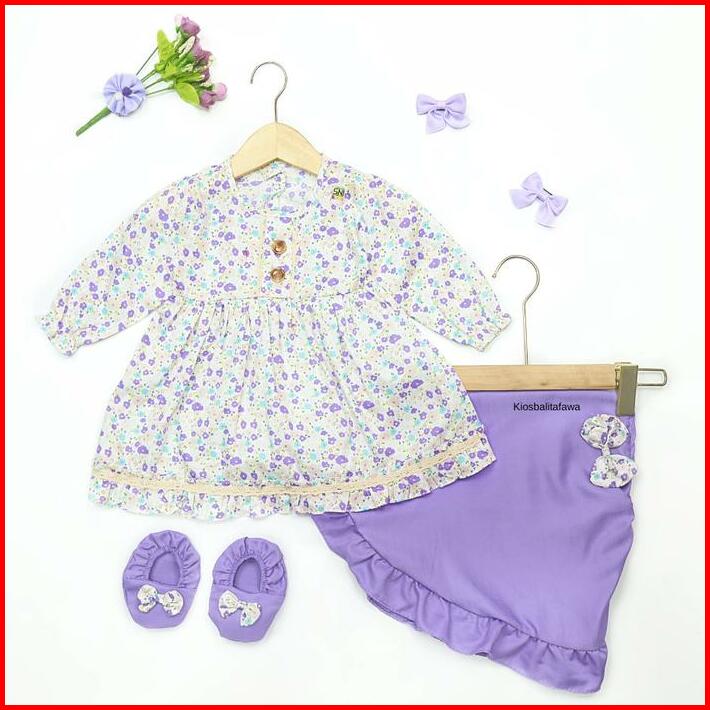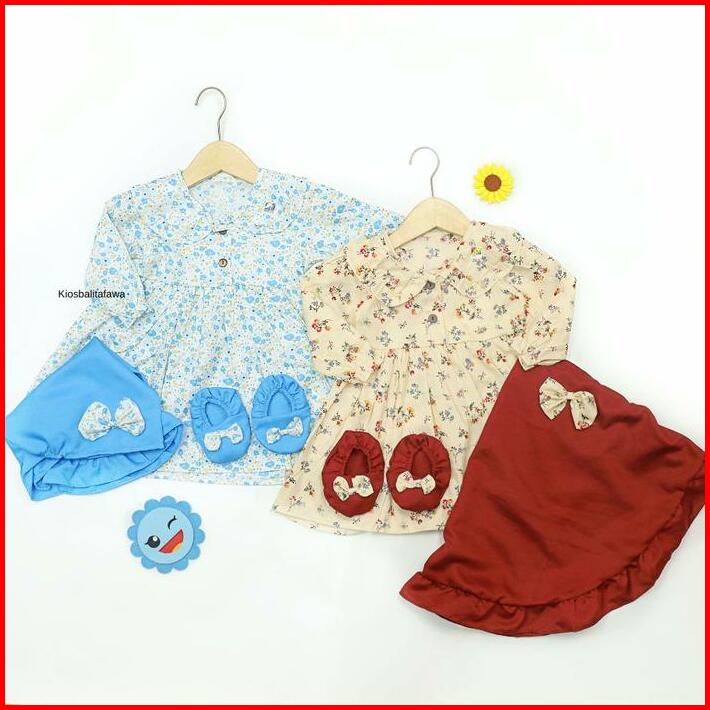 Sni Gamis Flora Uk 0-12 Bulan Bayi Perempuan Gratis Jilbab Sepatu Dress Dres Baju Muslim Anak Baby Perempuan Cewek 3-12
