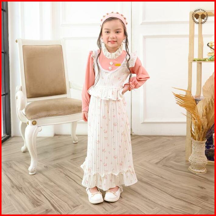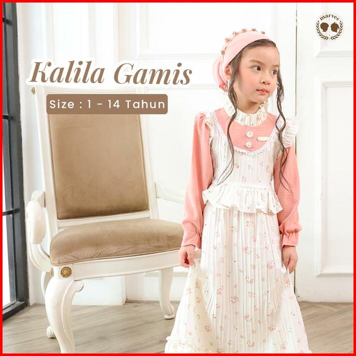 Marves Kalila Gamis Baju Muslim Anak Perempuan Bahan Crinkle Motif Bunga Usia 2 Hingga 14 Tahun