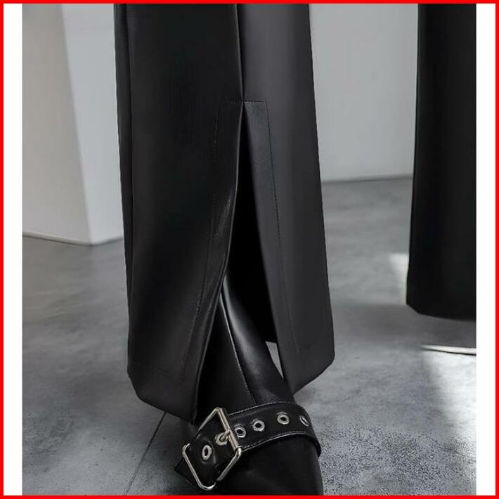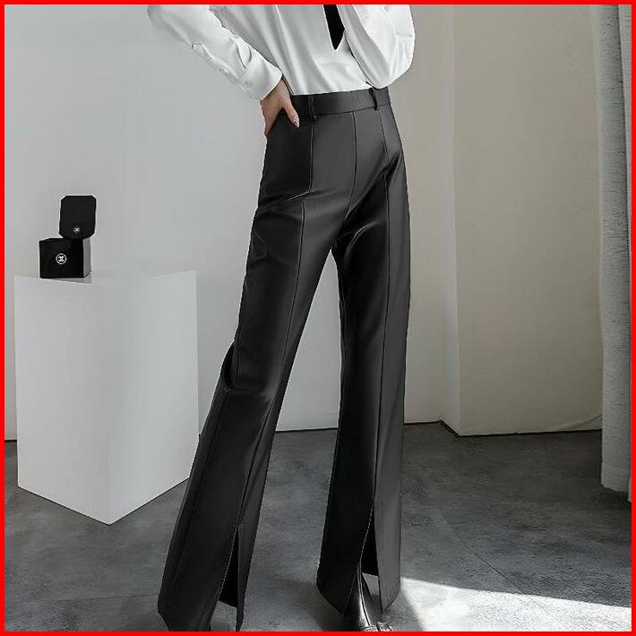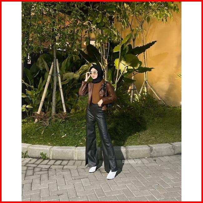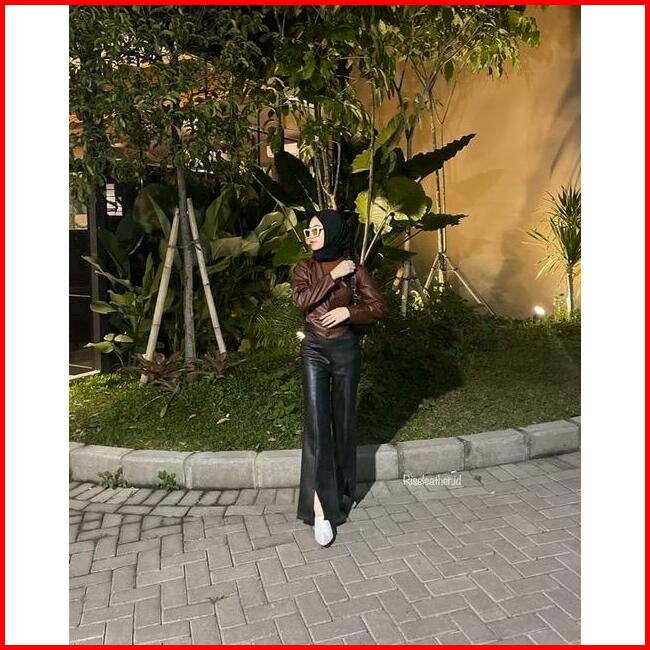 Riseleather Celana Kulit Cutbray Wanita Pants Flare Haighwaist