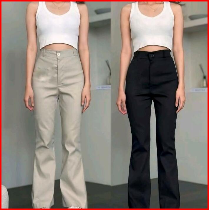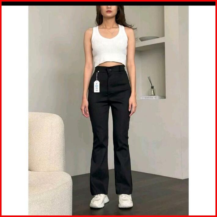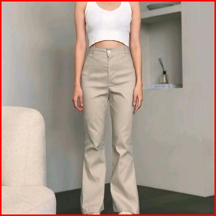 Celana Cutbray Flare Wanita Haigwaist Katun Twill Combad Melar