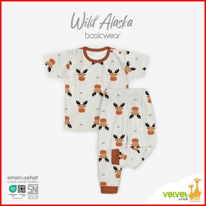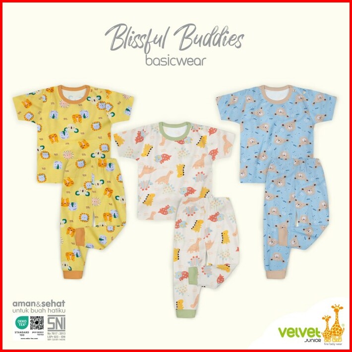 Velvet Junior Setelan Baju Anak Kancing Pundak Pendek Celana Panjang
