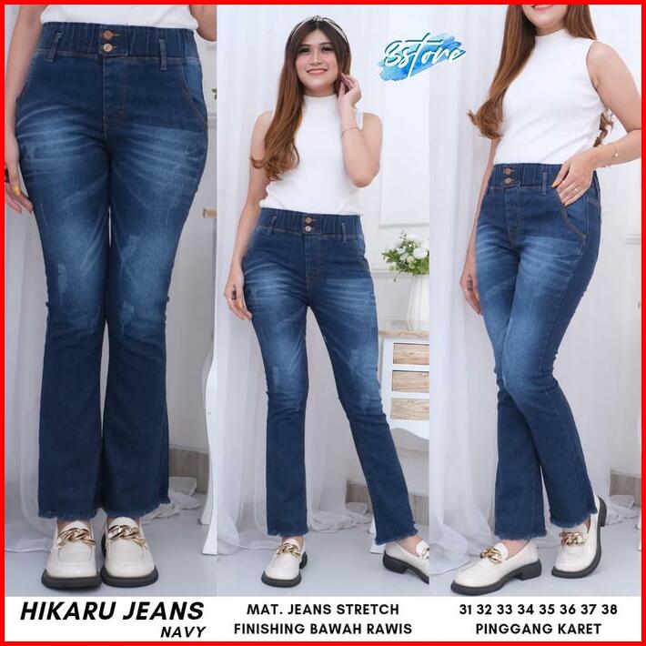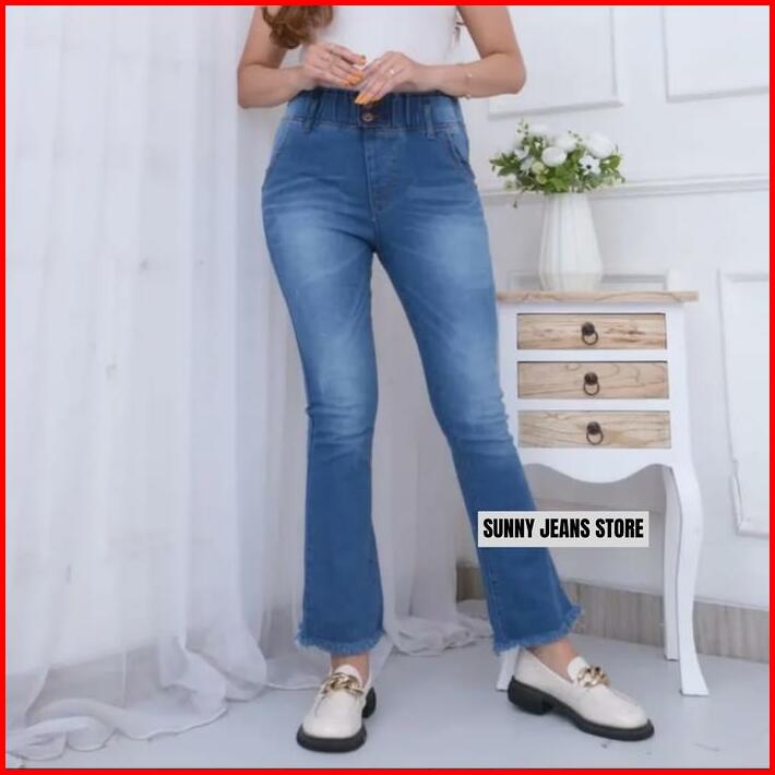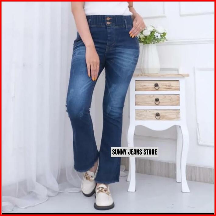 Sunny Jeans Store Celana Panjang Wanita Jeans Cutbray Kancing 2 Pinggang Karet Variasi Kaki Rawis Bahan Melar Jumbo Terb