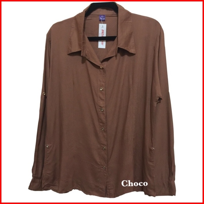 Atasan Kemeja Wanita Oversize Basic Rayon Mewah Terlaris Choco Xxxl