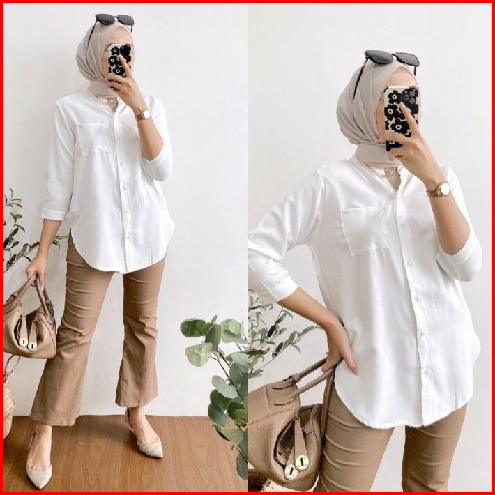 Kemeja Wanita Premium Simple Atasan Kasual Jumbo Oversize E2q4 Formal