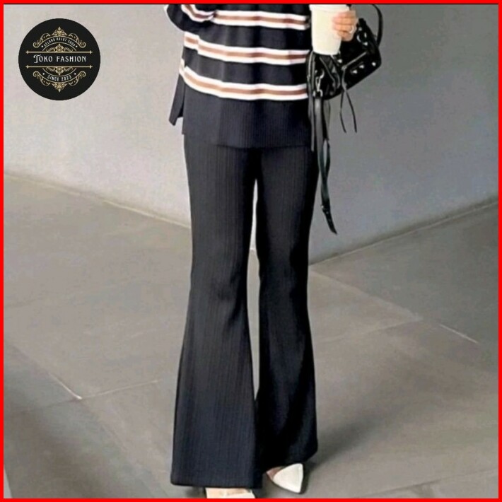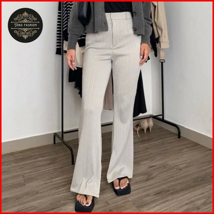 Highwaist Cutbray Knit Wanita Celana Cutbray Knit Kekinian