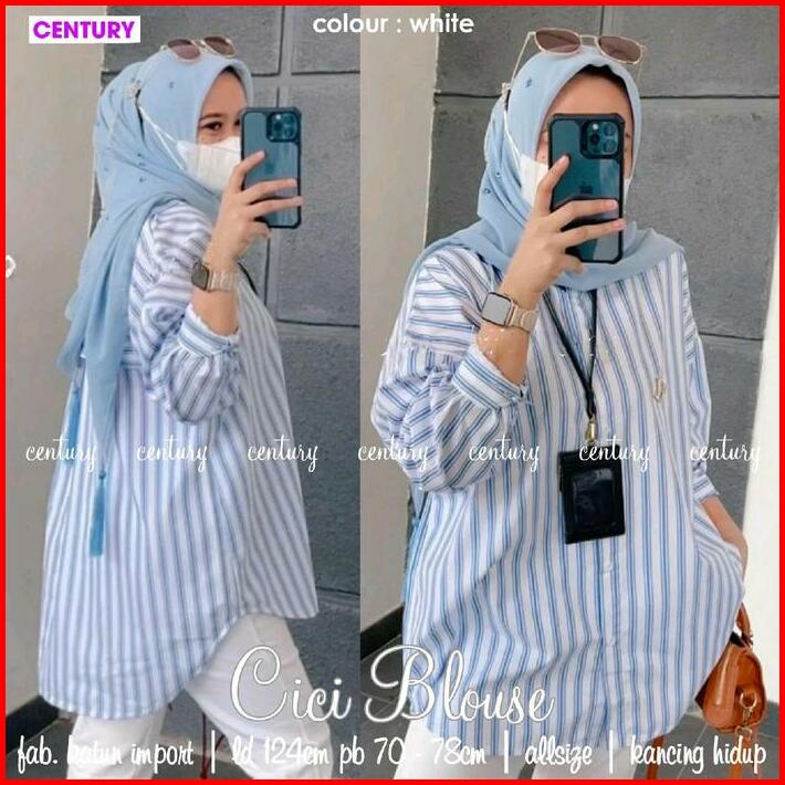 Cici Kemeja Wanita Jumbo Motif Stripe Lengan Panjang Bahan Katun Import Ld 124 Pb 70-78 Busui Simple Cantik Oversize Ter