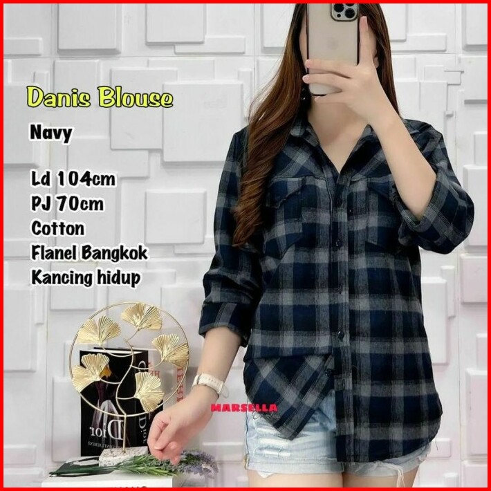 Kemeja Flanel Wanita Oversize Danise Kotak Kotak Kekinian Hits