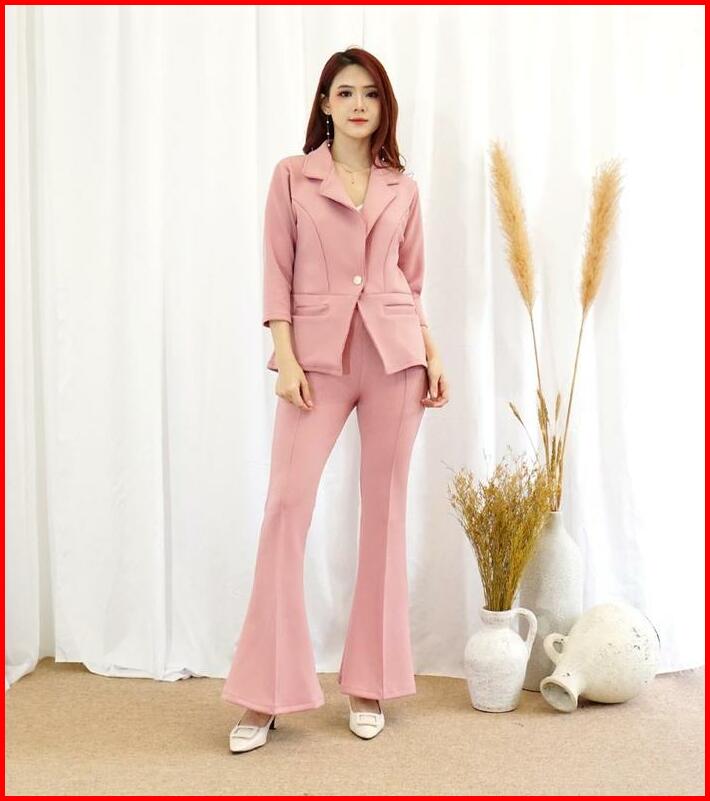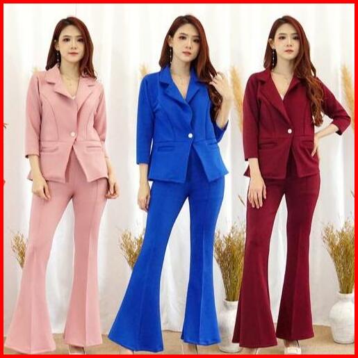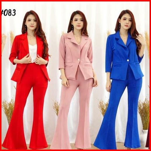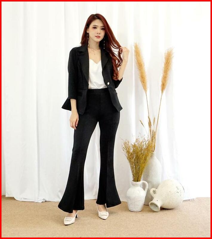 083 Set Blazer Pocket Cutbray Scuba Premium Polos Setelan Wanita Celana Panjang Atasan Dewasa Hitam Outer Kulot Bawahan