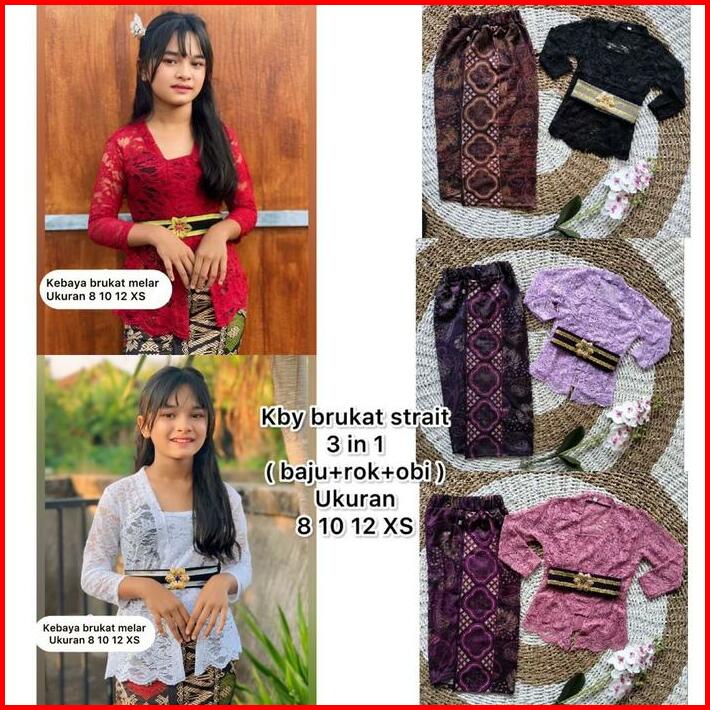 Kebaya Brokat Sofia Anak Set Sepaket Kebaya Anak Perempuan Usia 4-15 Thn Baju Adat Kebaya Anak Tk Sd Smp Lengan Panjang
