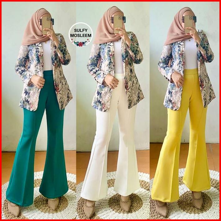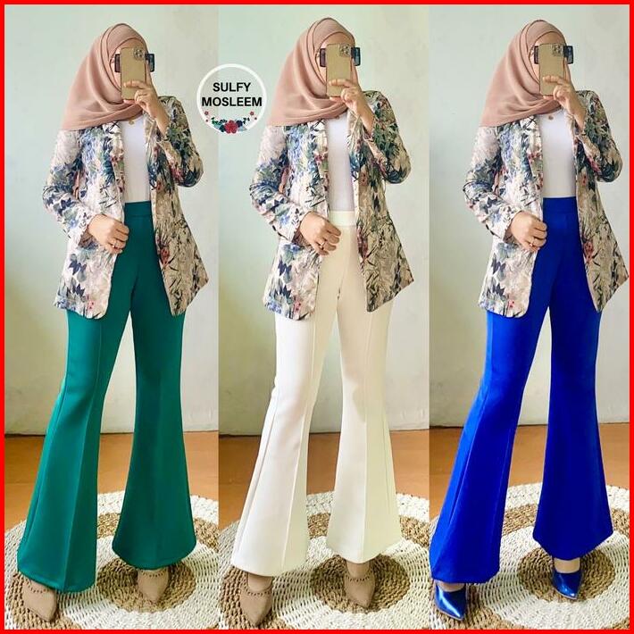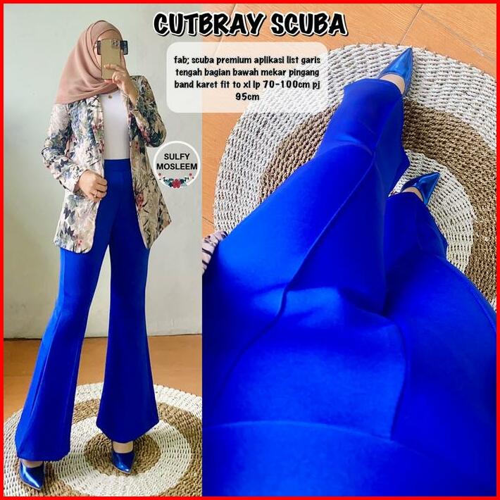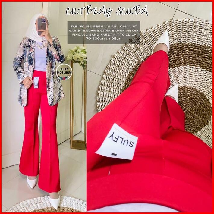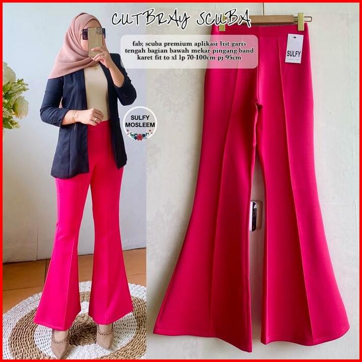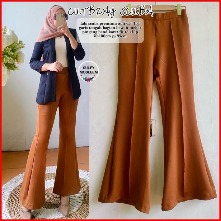 Celana Cutbray Scuba Premium Pingang Karet Polos Panjang