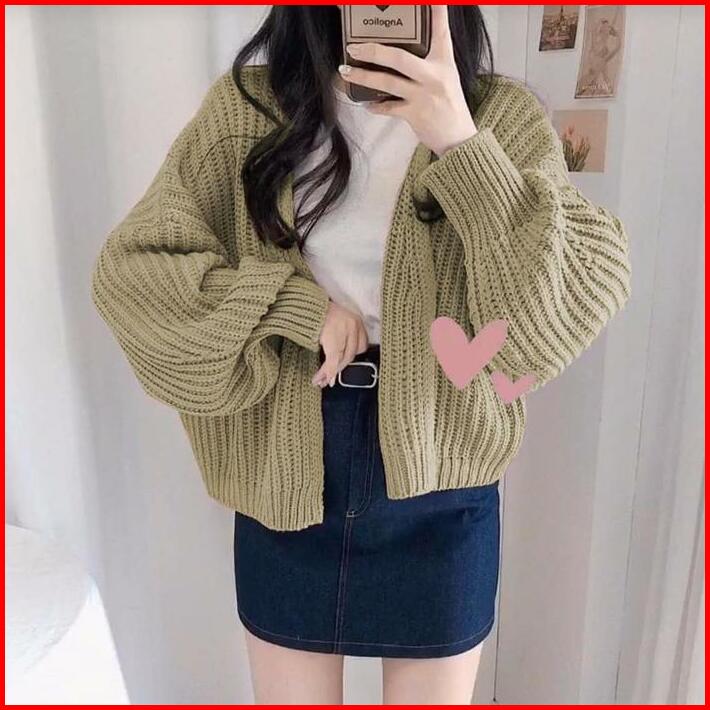 Cardigan Rajut Hazel Oversize Tebal Outer Sweater Knit Korea Fit Knitwear Baju Casual