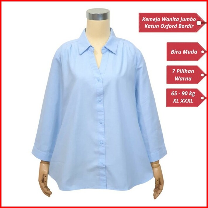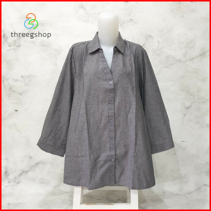 Kemeja Oversize Wanita Katun Oxford Tangan 7 8 Leher V 756