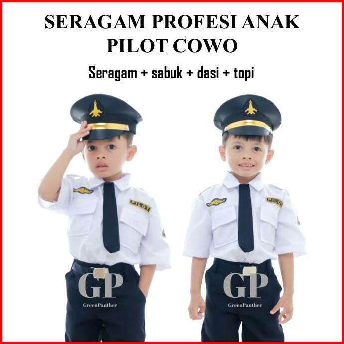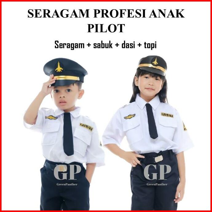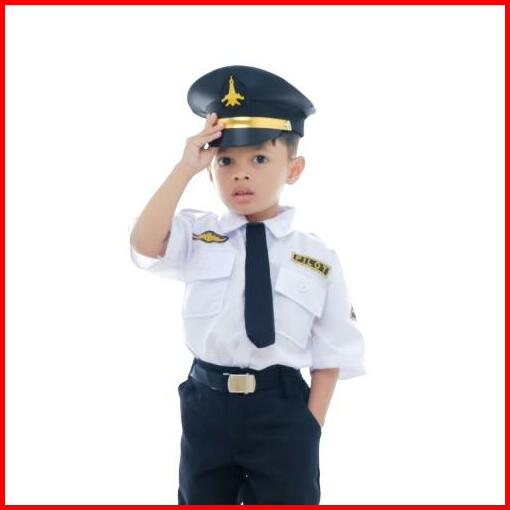 Baju Seragam Pilot Anak Laki Laki Perempuan Cowok Cewek Kostum Profesi Anak Satu Setel Kumplit Seragam Karnaval Anak Tk