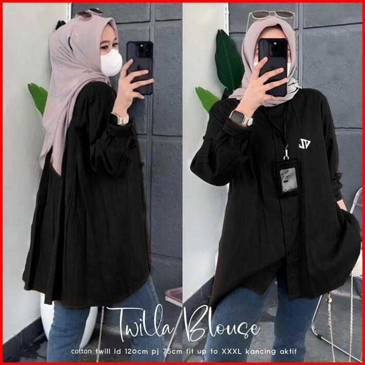 Busana Kemeja Atasan Polos Wanita Basic Lengan Panjang Oversize Katun Premium Hq Baju Busui Hitam Casual Top