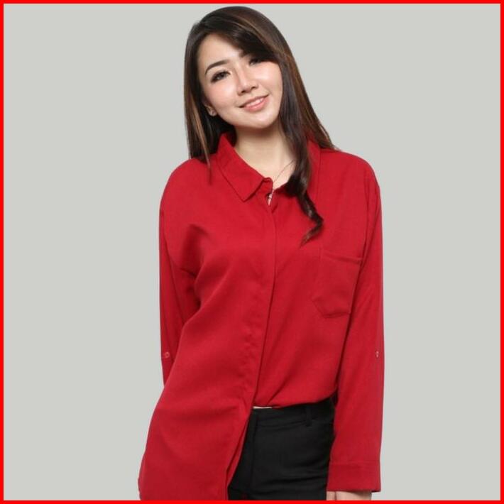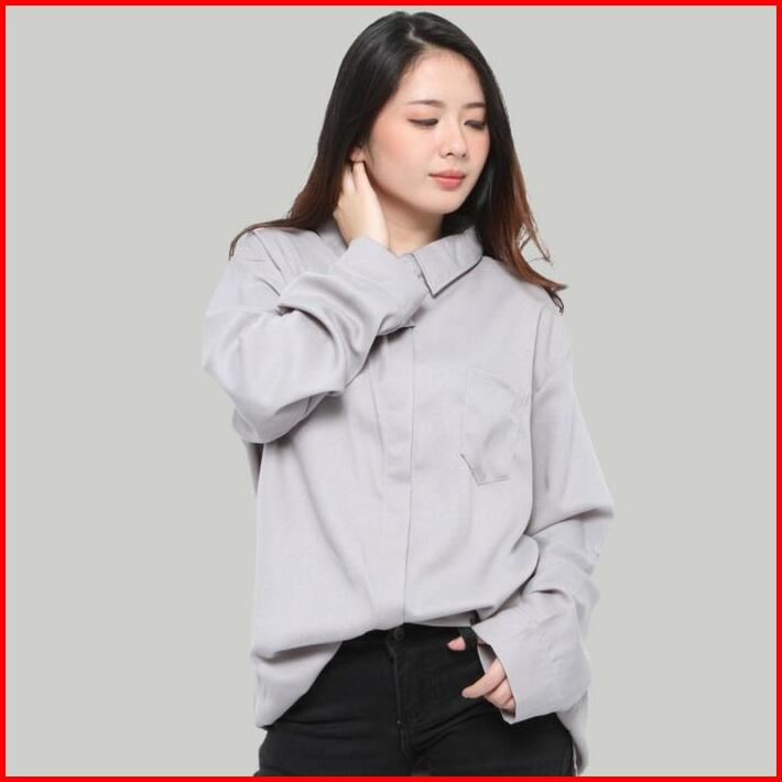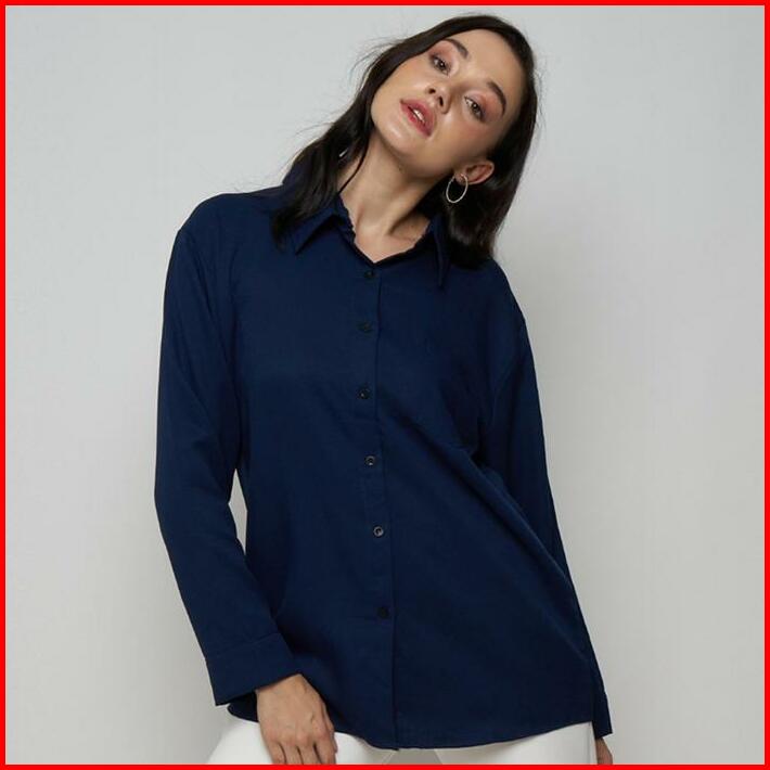 Monellina 006183 Kemeja Oversize Wanita Lengan Panjang Polos