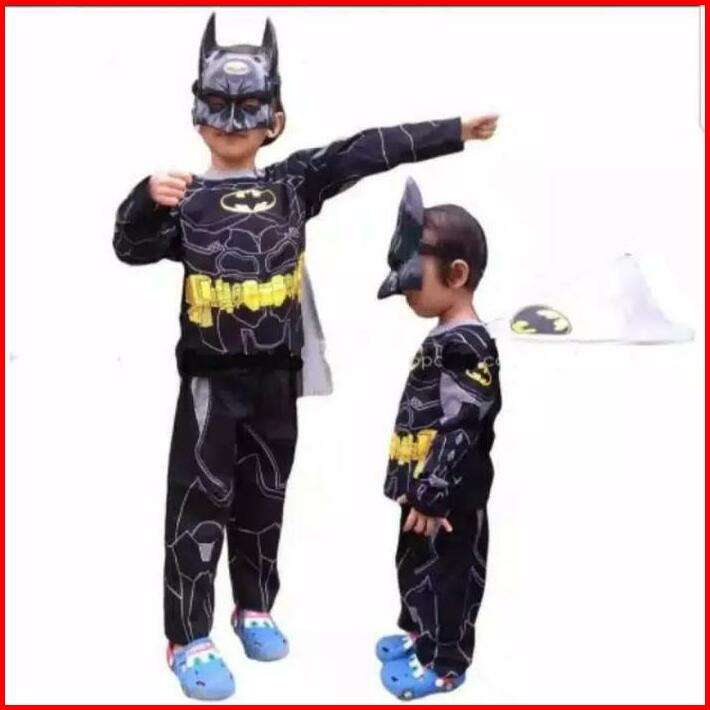 Kostum Baju Anak Batman Lengan Panjang Sayap Free Topeng