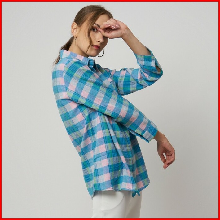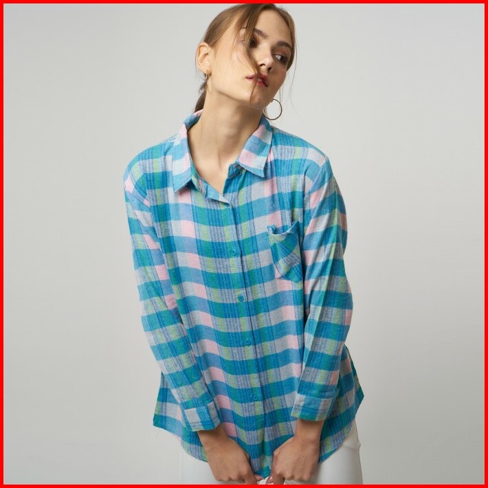 Monellina 601057 Kemeja Flanel Oversize Wanita Lengan Panjang