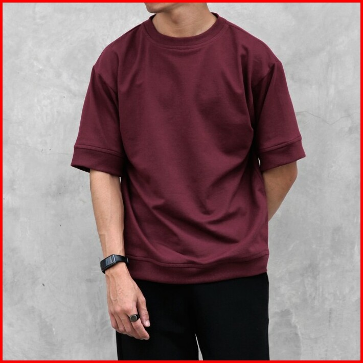 Luke Oversized Tshirt Burgundy Red Kaos Oversize Pria
